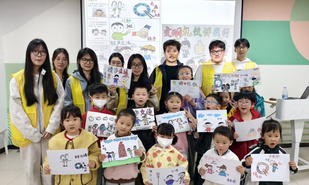 活动最后,志愿者带领孩子们开展了“文明礼仪伴我行”主题绘画创作。孩子们拿起画笔,在画纸上描绘出自己心中的文明场景:有的画了同学间互相帮助的画面,有的画了公交车上主动让座的瞬间,还有的画了家庭中尊敬长辈的温馨时刻。一幅幅充满童真的作品,展现了孩子们对文明礼仪的理解与向往。