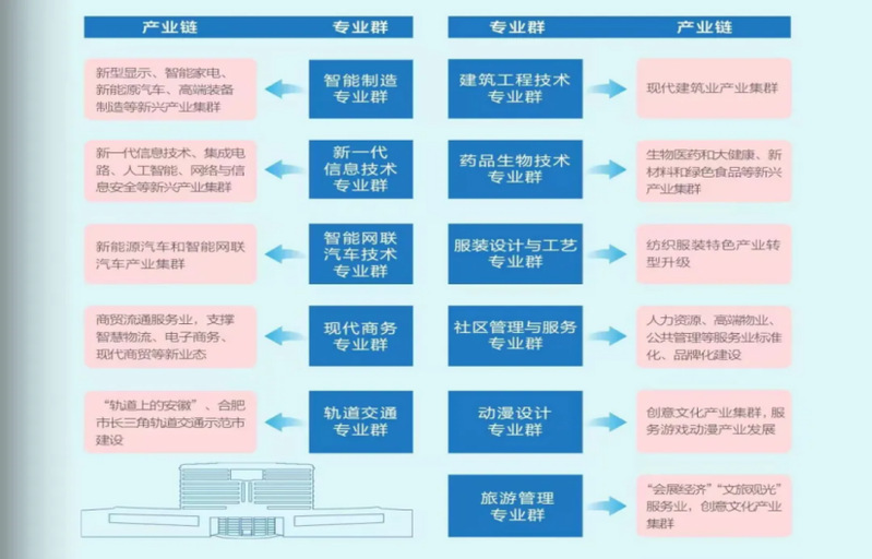 瞄准支柱产业,精准落子。围绕安徽省新能源汽车产业集群建设,汽车工程学院携手比亚迪、大众安徽、蔚来、理想汽车、国轩高科等龙头企业,建成比亚迪标杆产业学院,并获批省级新能源汽车产教融合区域开放型实践中心。围绕合肥市“芯屏汽合”产业布局,智能制造现代产业学院深度对接京东方、国轩高科等链主企业,新一代信息技术现代产业学院汇聚华为、科大讯飞、奇安信、本源量子等头部企业,构建覆盖集成电路、软件生态、网络安全、数据服务的全链条产教融合生态。