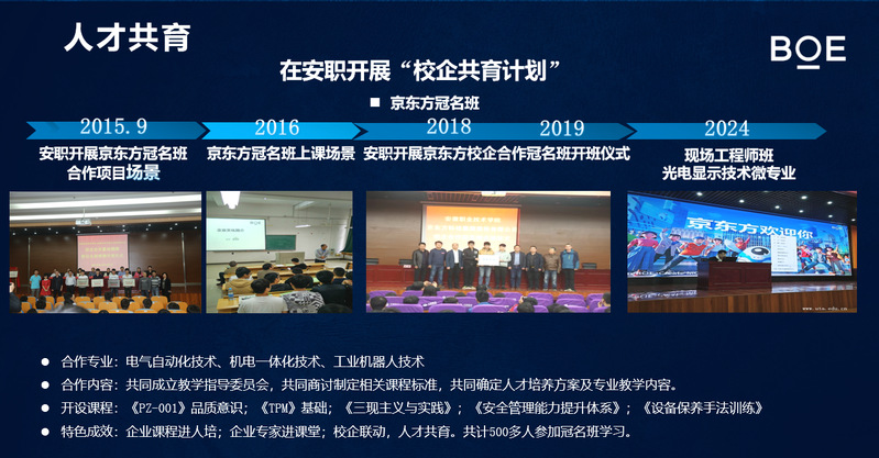推行“双导师制”项目化教学,实现课堂与车间“零距离”。学校聘请35名企业技术骨干担任兼职教授,与京东方联合获批国家级“双师型”教师培训基地,建成“双师双能型”高水平教学团队。企业技术骨干与校内教师结对,将企业真实生产项目、技术攻关难题作为毕业设计和课程实训课题。通过共建“京东方智能制造现代产业学院”等平台,企业一线的工艺、图纸对学校不再是“黑箱”,课堂知识与产业技术实现无缝更新。