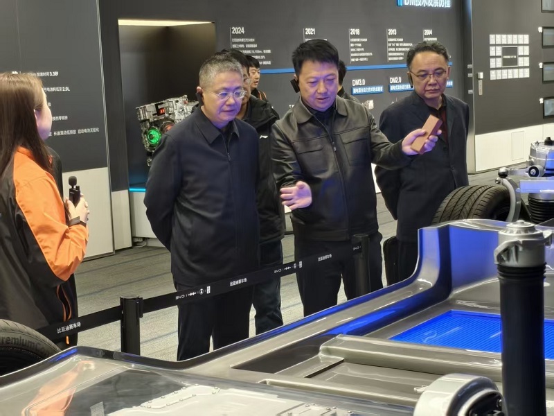 比亚迪汽车华东地区人力资源部总监陈武军热情接待了李庆宏一行,介绍了比亚迪汽车的发展历程、产业布局以及立足科技自主创新的最新技术成果。在比亚迪科技创新展览馆,李庆宏一行认真听取了关于企业核心技术的讲解,重点了解比亚迪汽车最新发布的“兆瓦闪充”技术及其应用前景,同时询问了企业未来发展规划和人才需求情况。