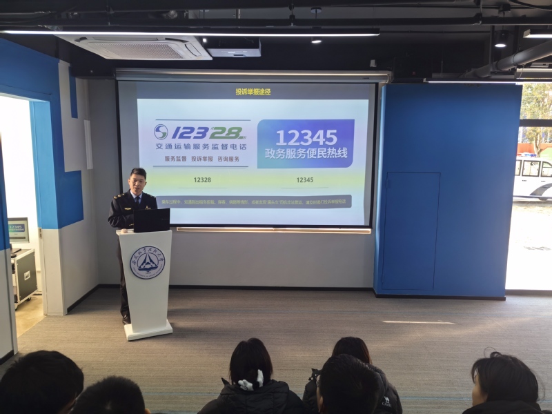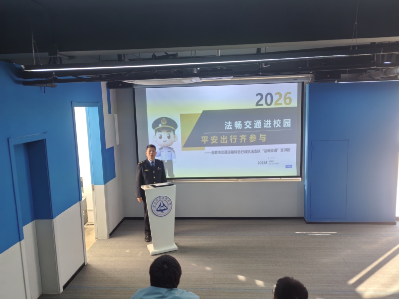 为进一步加强校园交通安全宣传教育,积极营造安全文明出行氛围,有效防范交通安全事故发生,1月13日,安全管理处联合合肥市交通运输综合行政执法支队新站大队在一站式学生社区开展“交通安全进校园”活动,合肥市交通运输综合行政执法支队新站大队综合办主任朱礼郁、安全管理处工作人员和二级学院学生代表参加活动。