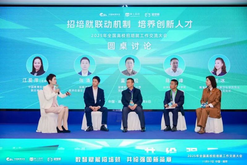 在圆桌讨论环节,宣岩松与参会嘉宾围绕“招培就联动机制”“高质量发展”“创新人才培养”等议题展开深入交流,探讨各高校特色化发展路径。