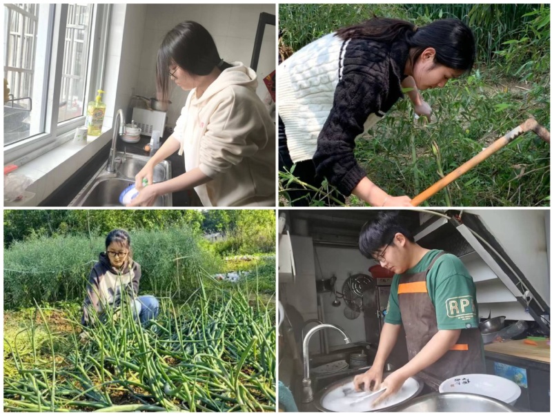 以家庭为基础,“生活化”夯实劳动教育根基。学院利用清明节、五一劳动节等节假日,组织开展“争做家务劳动能手”等活动,鼓励学生开展固定家务劳动,例如房屋清洁、美食烹饪、家居美化等,或开辟家庭阳台、露台“种植角”,以家庭劳动作业的形式引导学生在生活中寻找“服务岗位”,培养“劳动达人”。假期中,同学们走进厨房,为家人做一顿美味佳肴;走进田间地头,为农田施肥除草,于潜移默化中塑造吃苦耐劳的优秀品格及热爱劳动的良好习惯。