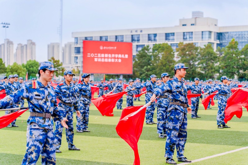 军训总结表彰大会阶段,由2025级新同学组成的数字方阵依次摆出“1954—2025”“升本不忘本 升格更有格”“中国特色 世界一流”“正义必胜 和平必胜 人民必胜”等字样,表达了他们对安职大、对祖国的热爱;分列式、军体拳、红旗方阵、战术表演气势如虹,充分展现出安职大学子昂扬的精神风貌。