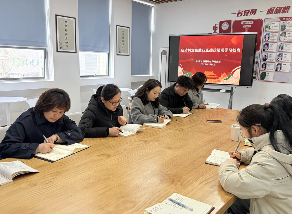 3月9日,社区公益管理教师党支部组织传达学习中央党的建设工作领导小组会议精神和中共中央办公厅印发《关于在全党开展树立和践行正确政绩观学习教育的通知》,党支部全体成员参加学习。