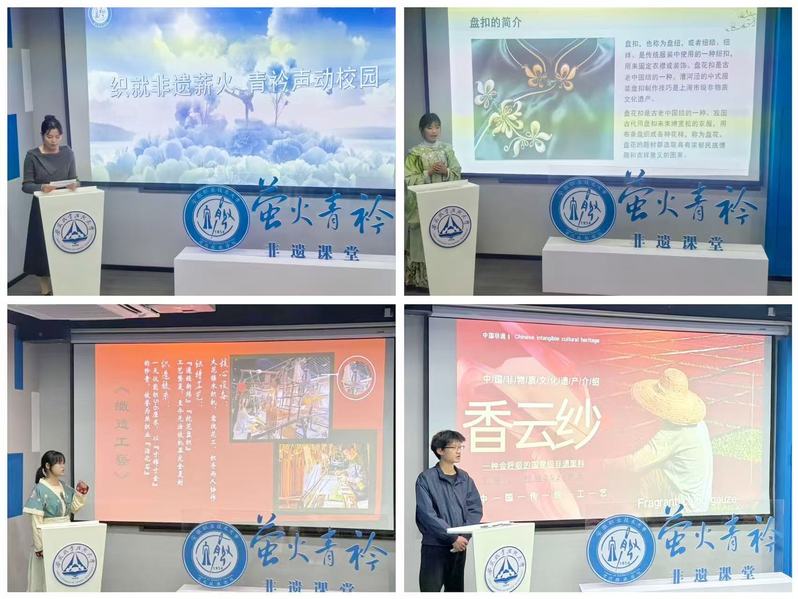 11月16日,由校团委主办、现代服装学院团总支承办的“织就非遗薪火·青衿声动校园”非遗主题宣讲活动在学校“一站式”社区精彩上演。本次活动通过沉浸式体验,让青年学子近距离感受非遗技艺的深厚底蕴,在校园里播撒文化传承的种子。