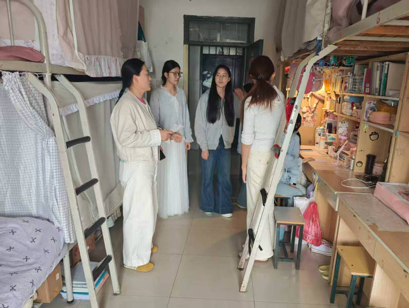 中午12:20,学院党总支书记潘瑞春带领全体专兼职辅导员及学生干部深入宿舍,重点检查违规电器、私拉电线、易燃易爆物品、消防通道堵塞等问题,并对宿舍卫生、物品摆放、水电设施进行排查。针对发现的问题现场登记、明确整改要求,并对相关学生进行安全教育,引导其自觉遵守管理规定,共同营造安全、整洁、文明的住宿环境。