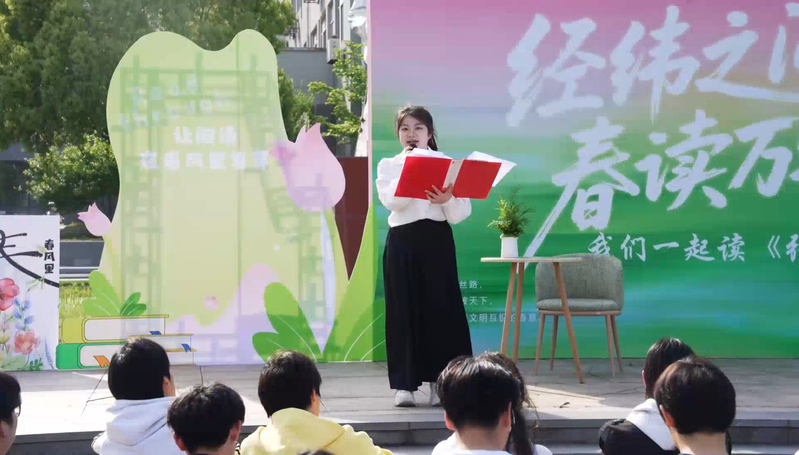 4月24日下午,在第31个世界读书日的书香氛围中,现代服装学院在校园黄道婆雕像旁银杏大道举办第二十期英华读书会。本次活动以“经纬之间·春读万物”为主题,通过共读《张骞传》,将古代丝绸之路的开拓精神与行走的纺织工程史、纺织服装专业教育有机融合,为青年学子呈现了一堂生动的专业人文课。学院专职辅导员、学生党员、入党积极分子及新发展团员与骨干教师代表等共同参加。