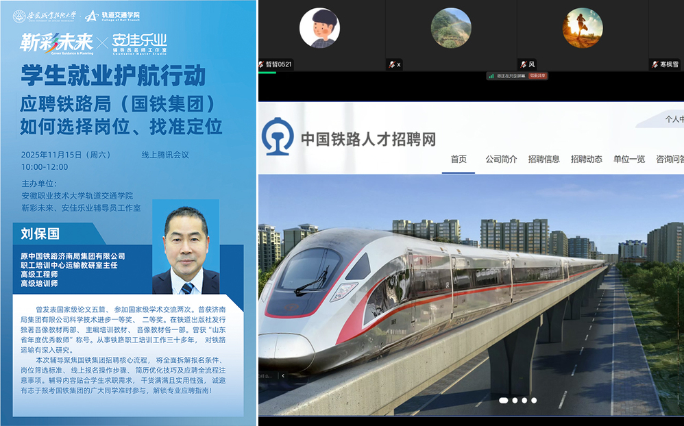 为助力2026届毕业生厘清职业方向、决胜求职之路,11月15日上午,轨道交通学院以“靳彩未来”辅导员工作室建设为依托,联合“安佳乐业”辅导员名师工作室,成功举办“学生就业护航行动”线上专题辅导活动。