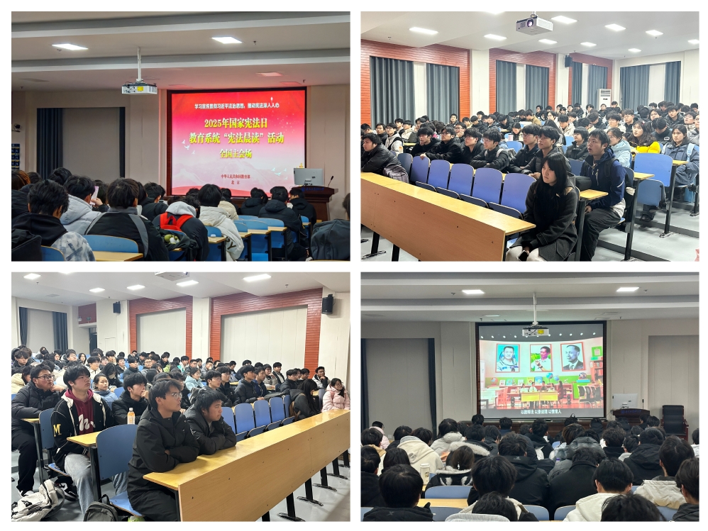 学院组织各班级学生代表齐聚西一阶梯教室,集中观看了2025年国家宪法日“宪法晨读”活动直播。