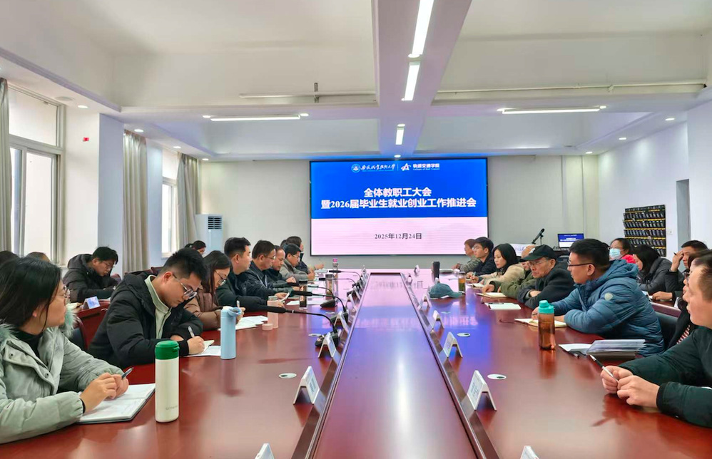 为扎实推进学院2026届毕业生就业工作,促进毕业生更加充分、更高质量就业,持续提供全面就业指导服务,学院分别于12月22日中午和12月23日下午,先后召开2026届毕业班辅导员就业工作动员会与全院教职工就业工作推进会。学院党政班子成员、全体2026届毕业班辅导员及全院教师参加会议。