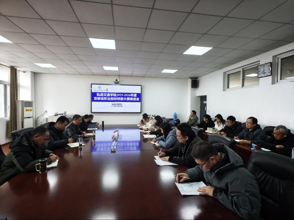 为全力冲刺 2025-2026 年度安徽省职业院校技能大赛,凝聚备赛合力、明确攻坚方向,1 月 6 日下午,轨道交通学院在至兴楼 804 会议室召开备赛推进会。学院党政班子成员、全体赛项指导教师参会,共同为赛事备战谋篇布局。