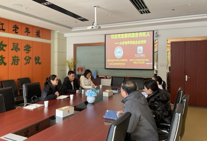 为探索校企合作新模式,推动养老事业与专业教育协同发展,2025年2月25日下午,公共管理学院社区公益管理教师党支部教师赴安徽九久夕阳红医养集团有限公司开展调研活动。