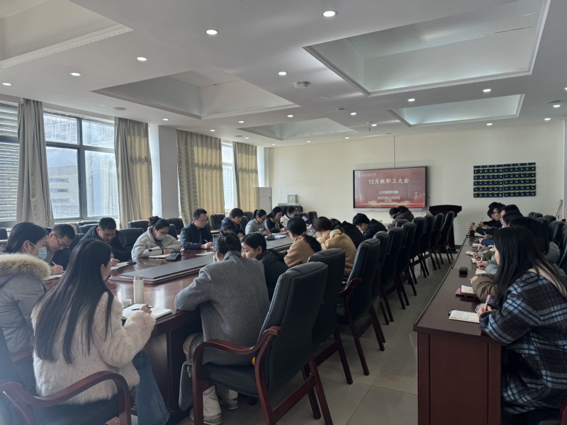 12月3日下午,公共管理学院召开12月份全体教职工大会,学院党政负责人及全体教职工参加会议,会议由副院长朱凤丽主持。