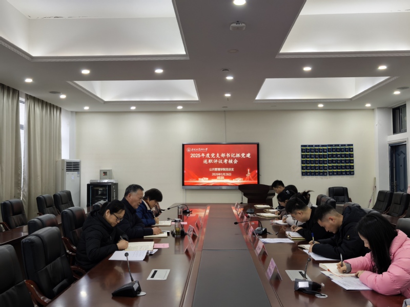 为深入贯彻落实新时代党的建设总要求,压紧压实党支部书记抓基层党建第一责任人职责,2026年1月26日,公共管理学院党总支召开2025年度党支部书记抓党建述职评议考核大会。学校纪委相关领导,学院党总支委员,党总支组织员及各党支部书记、支部委员等参加了评议考核会议。会议由党总支书记王冬梅主持。