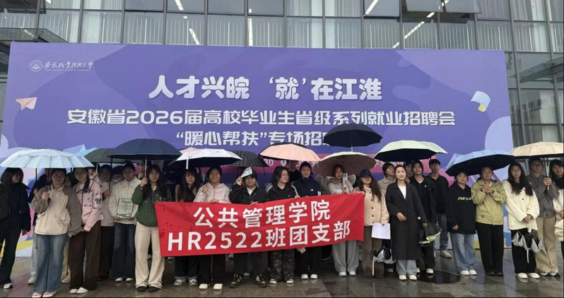 为深化专业认知、夯实就业基础,明确职业发展目标,4月22日下午,公共管理学院人力资源管理专业HR2522班全体同学前往安徽省2026届高校毕业生系列招聘会——“人才兴皖,‘就’在江淮”现场,开展集体实践学习活动。