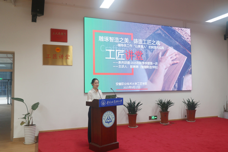 本网讯(工会)为深入贯彻落实立德树人根本任务,大力弘扬劳模精神、劳动精神、工匠精神,进一步强化职业教育在新时代的使命与担当,充分发挥工匠学院在高技能人才培养中的作用,让匠心育人融入到辅导员日常工作中去,2025年9月17日,工匠学院成功举办“工匠讲堂”2025秋季学期第一讲,邀请智能制造专职辅导员彭琳琳,为辅导员和年轻教师们带来了一场以“雕琢智造之美,铸造工匠之魂—— 辅导员工作以美育人的探索与实践”为主题的精彩分享。