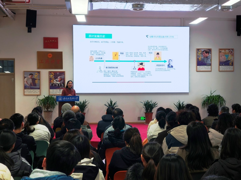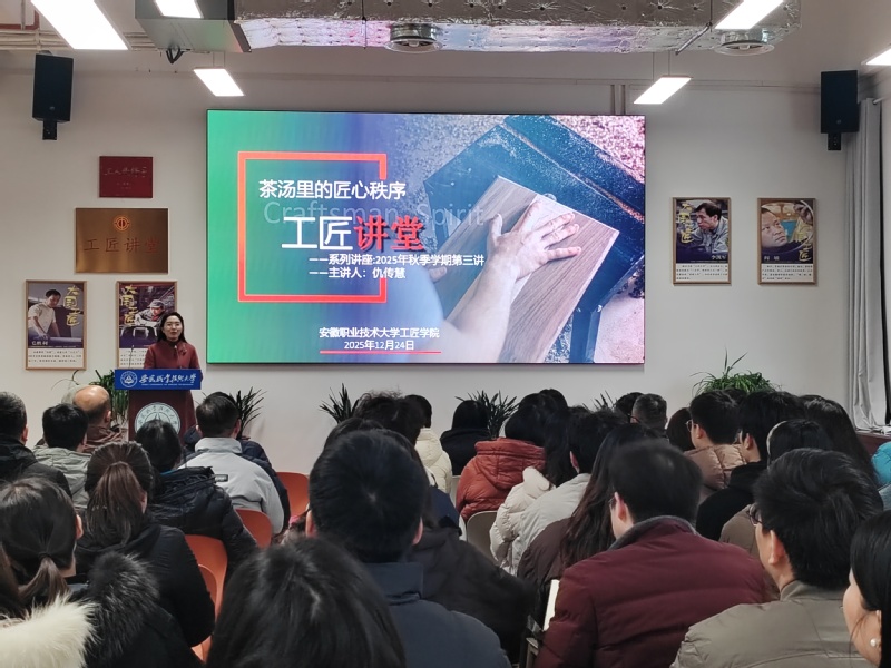 本网讯(校工会)为大力弘扬劳模精神、劳动精神、工匠精神,推动非遗传承与职业教育深度融合,厚植文化自信,传承中华优秀传统技艺,同时丰富教职工精神文化生活,20251224日,工匠学院成功举办“工匠讲堂”2025秋季学期第三讲,邀请安徽工匠、安徽省三八红旗手、合肥市劳动模范、合肥市五一劳动奖章获得者仇传慧担任主讲人,她以“茶汤里的匠心秩序”为主题,为现场听众带来了一场文化底蕴与实操价值兼具的精彩分享。