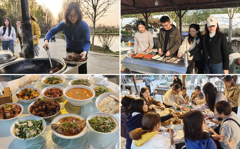重头戏是大锅饭和烧烤环节。大家分工协作,有的洗菜切菜,有的生火添柴,有的掌勺烹饪。灶台前,平日里在讲台上严谨认真的老师们变身“大厨”,各显身手。柴火灶炖出的土鸡香气四溢,烧烤架上的肉串滋滋作响,大家围坐在一起品尝劳动成果,其乐融融。“大家一起动手做饭,比单纯吃饭有意思多了。”活动组织者表示,这样的安排不仅让大家体验了农家生活的乐趣,也增进了同事之间的感情。