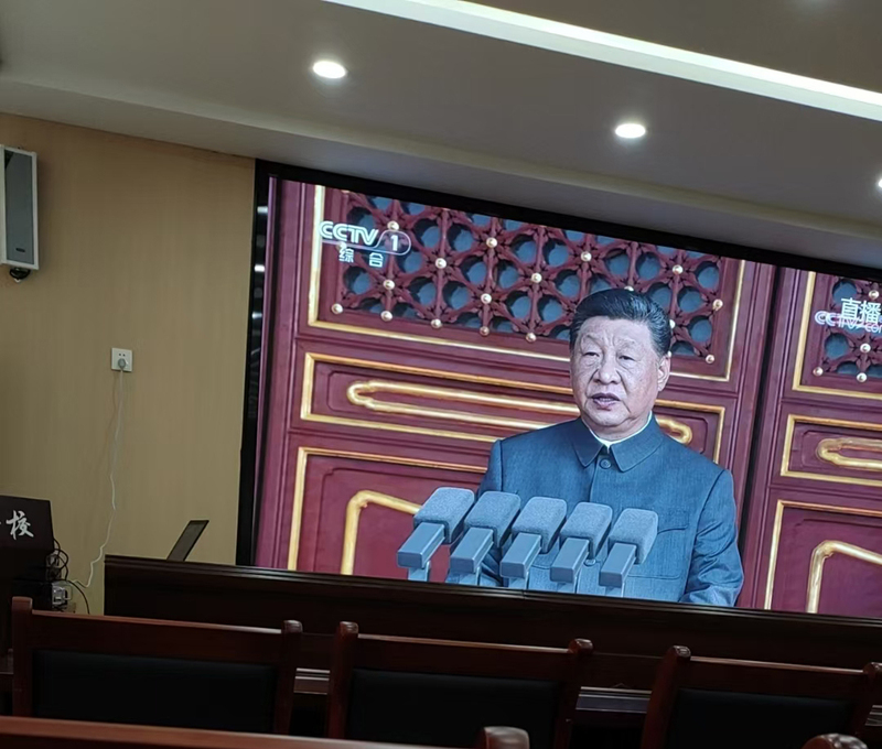 9月3日,纪念中国人民抗日战争暨世界反法西斯战争胜利80周年大会在北京隆重举行,国有资产管理处党支部全体人员在学校西园同步参加。