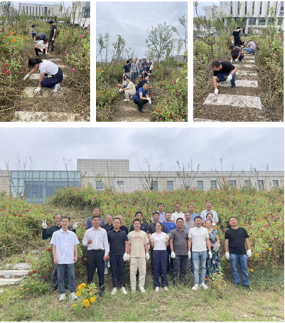 活动开始后,后勤管理处全体员工通力合作,砍树根,拔杂草,短短一小时,就将枯枝杂草清理完毕,方便后期路面整饬。