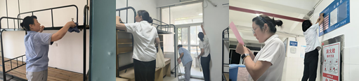 (一)新生宿舍筹备上,提前启动1314间新生宿舍深度清洁与设施检修工作。逐间清理卫生死角,对床铺、衣柜、桌椅等家具进行加固与消毒;全面排查水电线路、门窗锁具、卫浴设备,更换老化零部件217处,确保每间宿舍设施完好、环境整洁,从源头消除安全隐患