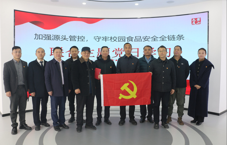 为深入贯彻落实党中央、国务院关于食品安全工作的系列重要决策部署,进一步加强基层党组织建设,落实学校机关党委“六个一”结对共建工作要求,充分发挥党建引领作用,12月5日,后勤管理处党支部一行6人前往合肥黄山大厦集团绿码生鲜供应链基地开展主题为“加强源头管控,守牢校园食品安全全链条”党日活动。黄山大厦集团运营党支部书记、总经理蔡军,黄山大厦集团运营党支部组织委员、总监刘阳等7人参加活动。