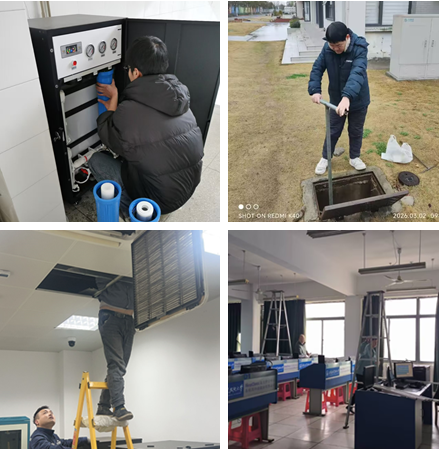 全面检修,优化育人环境。全面排查校园水电设施设备,确保开学后正常供水供电;检修教学楼照明、风扇、空调及课桌椅,营造整洁有序的教学环境;督促第三方服务单位对学生公寓淋浴设备、楼宇饮水机及电控系统进行试运行检测,保障生活设施正常运转;对高压配电房等特种设备开展专项安全检查,及时记录并消除隐患。重点处置假期积压的维修工单,优先解决影响教学与生活的急难问题,提升维修响应效率。目前,学生宿舍楼、教学楼及实训楼已按时恢复供水,各项设施运行正常。