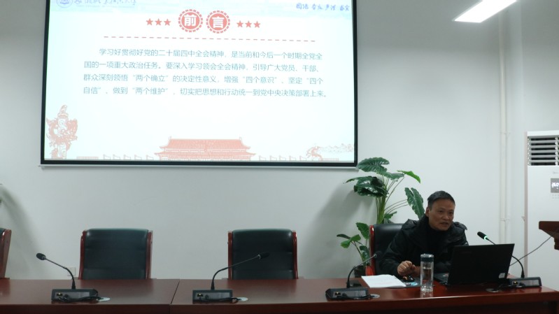 为深入学习贯彻党的二十届四中全会精神,引导青年团学骨干坚定理想信念、明确时代使命,11月20日,建筑工程学院在至真楼中212会议室举办筑梦大讲堂第十讲暨党的二十届四中全会精神辅导报告。学院党总支书记陈传胜教授受邀担任主讲人,学院全体团学骨干共100余人参加本次学习活动,现场学习氛围浓厚热烈。