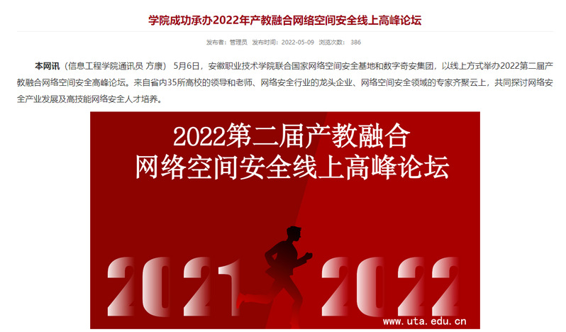 安徽职业技术学院承办2022年产教融合网络空间安全线上高峰论坛