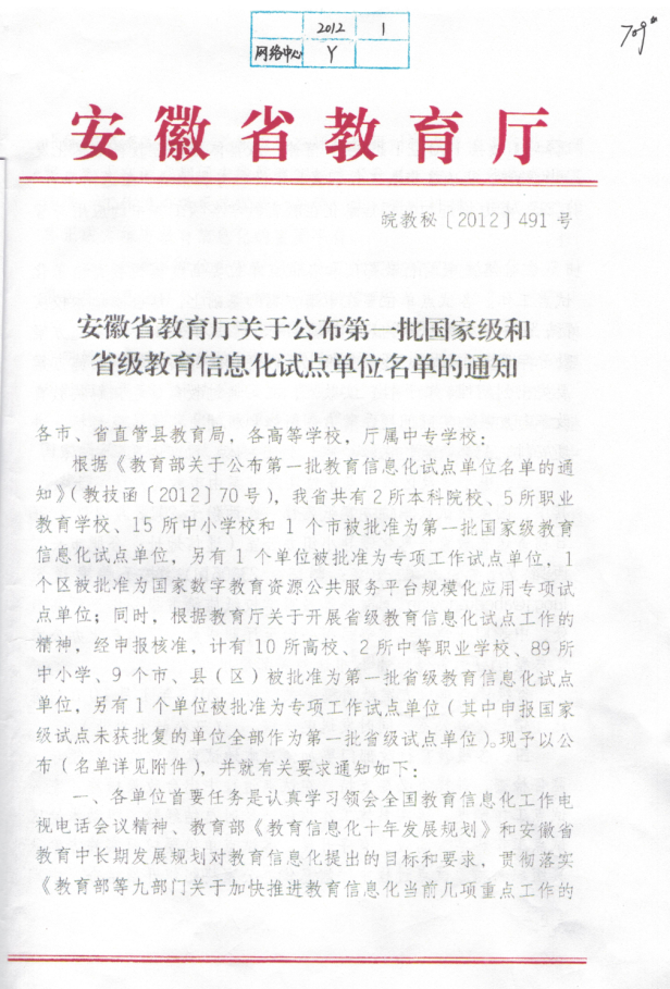 2012年,学院被教育部列为“高等学校教育信息化”试点校
