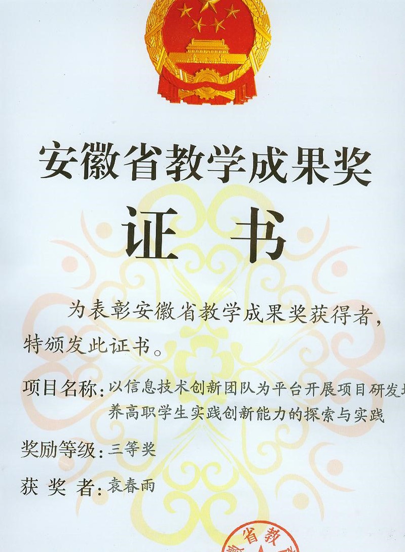 安徽省“以信息技术创新团队为平台”教学成果奖三等奖