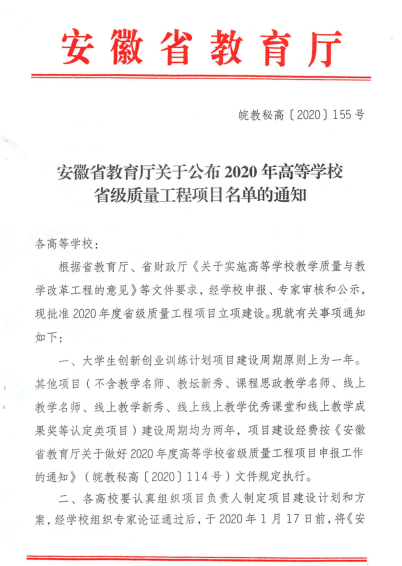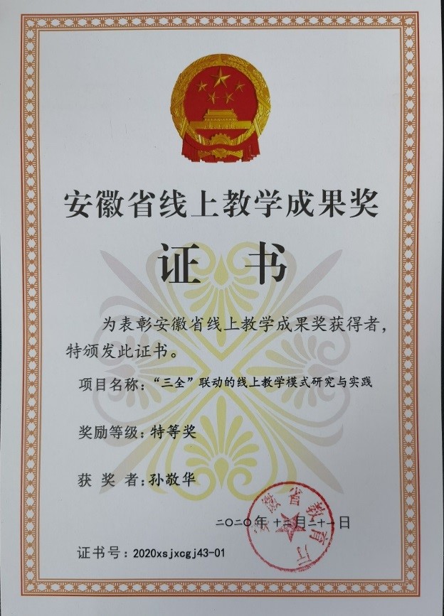 2020年获安徽省“三全”联动线上教学成果特等奖