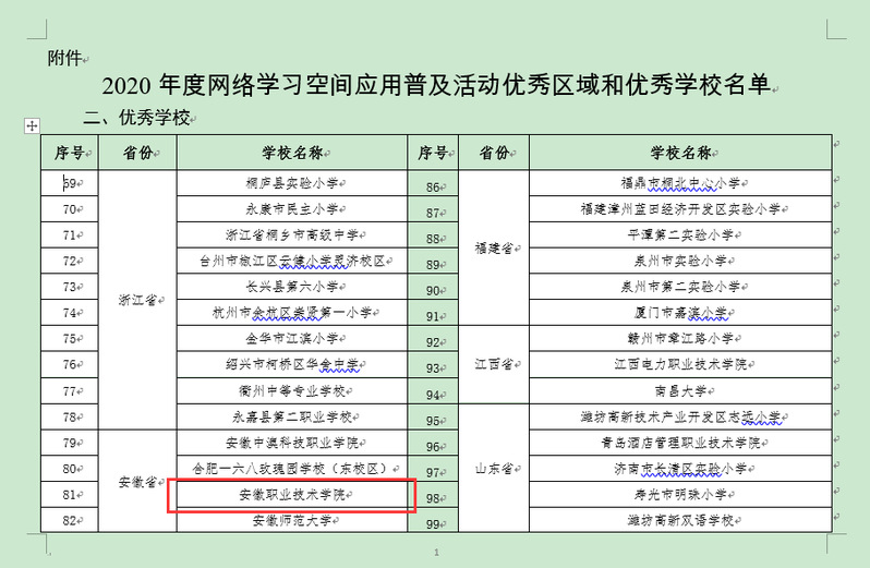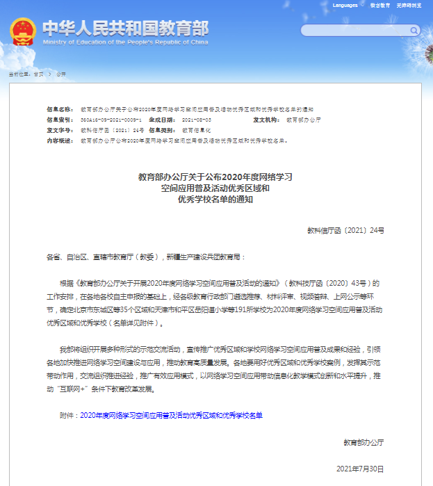 2020年,学校被教育部列为网络学习空间应用普及活动优秀学校