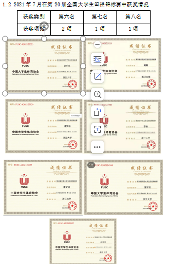 2021年7月在第20届全国大学生田径锦标赛中获奖情况