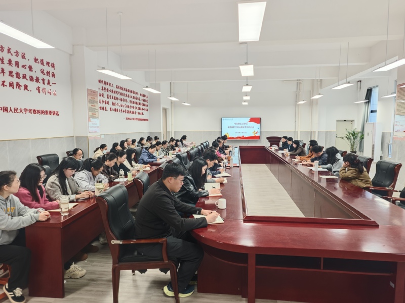 为深入学习贯彻党的二十届四中全会精神及相关重要文件精神,切实筑牢全院教职工的政治理论根基,以高质量党建推动学院事业高质量发展,11月12日,我院召开11月全体教职工政治理论学习研讨会议。学院党总支书记钱洁主持会议,全体教职工参会并展开研讨。