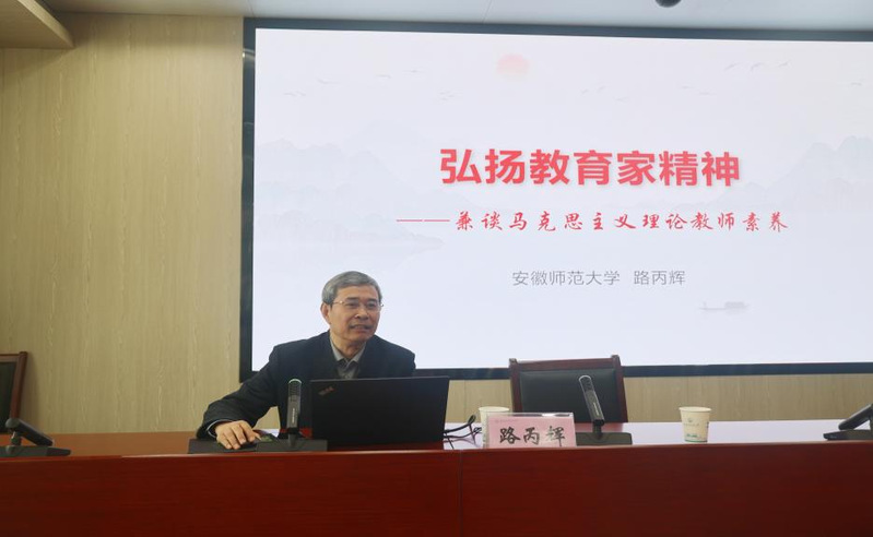 路丙辉教授以《弘扬教育家精神——兼谈马克思主义理论教师素养》为主题,从两大维度系统阐释。他深入解读了教育家精神的基本意涵,系统梳理了习近平总书记关于教育家精神的重要论述,全面阐释了教育家精神与“四有好老师”的内在逻辑关系。在提升马克思主义理论教师素养方面,路丙辉教授提出了“备课、讲课、养课”三位一体的成长路径,为思政教师精准教学提供了新思路。