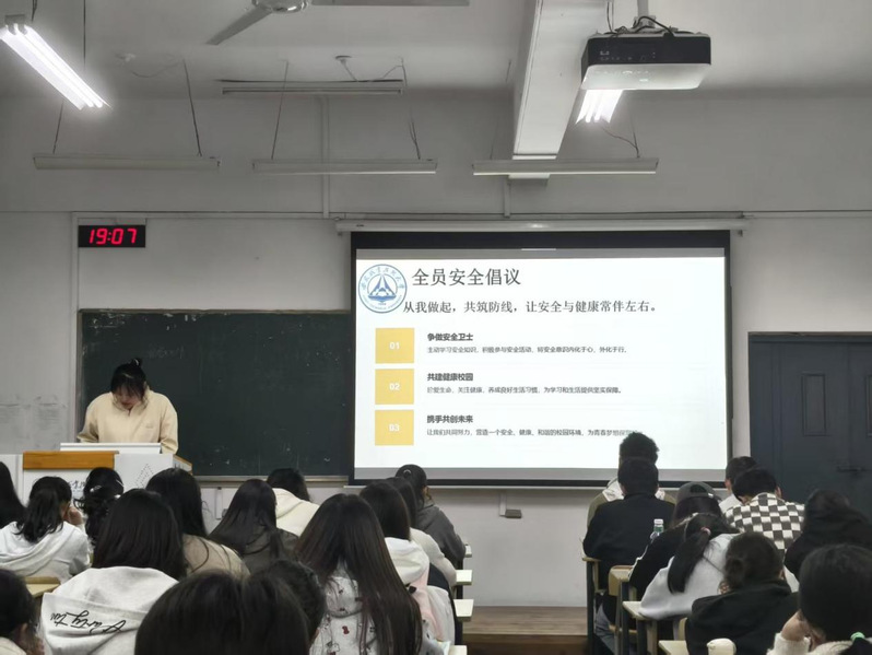 随后,在宿舍安全方面,宣讲团成员重点强调用电规范与防火防盗要求,明确禁止使用违规电器,提醒同学们合理使用空调,勤通风、常打扫,及时消除各类安全隐患,共同营造安全整洁的住宿环境。在此基础上,结合春季传染病多发特点,倡导大家加强体育锻炼,规律作息、均衡饮食,不断增强自身免疫力。
