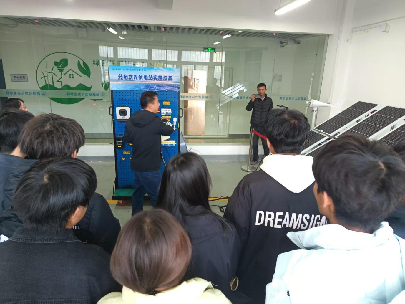 在新能源装备技术培训环节,聚焦光伏电站运维、风电装备检修、储能系统调试等核心技术领域,通过“理论授课+实操演示+现场答疑”的形式开展培训。结合行业最新发展趋势和实际应用案例,深入解析了新能源装备的核心原理、常见故障排查方法及安全操作规范。参训人员分组走进实训中心的新能源发电展示区、新能源VR区、分布式光伏实训区、高低压配电实训区、新能源电站调度区,在专业指导下开展设备拆装、数据监测、故障处理等实操训练,切实提升了技术应用能力和解决实际问题的水平。现场互动频繁,学习氛围浓厚,大家纷纷表示培训内容针对性强、实用性高,为今后的工作和学习提供了有力指导。