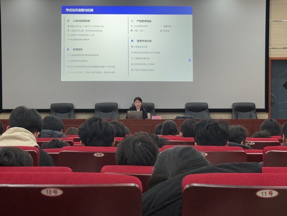 此次英语四级备考指导讲座紧贴学生实际需求,不仅有效解答了学生四级备考中的困惑,为学子提供了科学高效的学习方法,更充分体现了学院对学生成长成才的持续关怀与务实支持。未来,学院将持续围绕学生需求,开展更多针对性强、实用性高的育人活动,不断推进学风建设提质增效,为学校培养高素质技术技能人才贡献力量。(图文/何先俊 钟静)