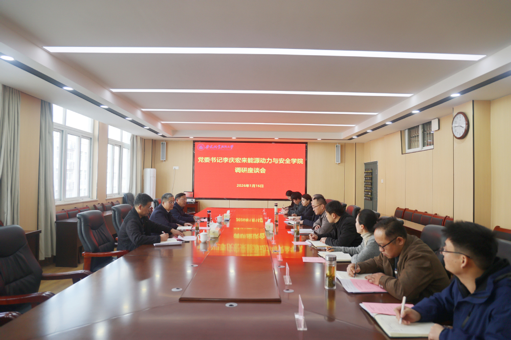 1月16日下午,校党委书记李庆宏深入能源动力与安全学院开展调研,实地了解学院建设发展情况,开展座谈交流并指导未来发展。学校基建处、办公室负责同志陪同调研。