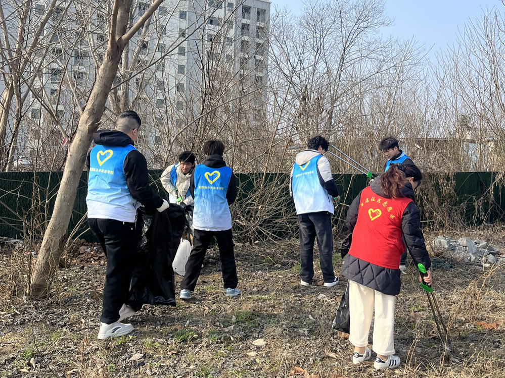 活动当天,学院志愿者们身着蓝白渐变志愿马甲,与社区工作人员、城管部门代表一同集结。志愿者们手持垃圾夹、垃圾袋等清洁工具,对指定区域内的道路、绿化带及卫生死角进行了全面细致的清理。大家分工明确、协作有序,有的仔细捡拾路面和草丛中的烟头、纸屑、塑料袋等杂物;有的深入灌木丛,用夹子清理隐藏其中的枯枝和废弃物;还有的负责将装满的垃圾袋集中搬运至指定的收集点,充分展现了我院学子良好的精神风貌和奉献精神。