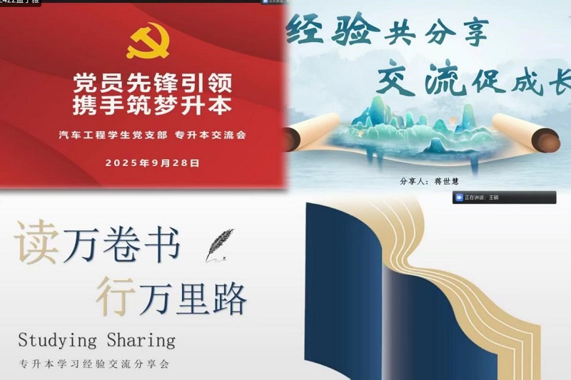 为精准助力学院学子备战专升本考试,弘扬“团结、奋发、严谨、求实”的校训精神,2025年9月28日,汽车工程学生党支部依托线上平台,成功举办“党员先锋引领,携手筑梦升本”经验交流会。汽车工程学生党支部老师、预备党员、入党积极分子以及学院各班级学生代表参会,此次活动旨在通过朋辈引领解答备考困惑,强化学风建设,充分发挥学生党员的先锋模范作用。