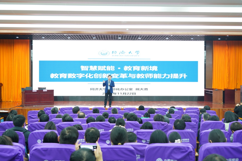 11月22日上午,同济大学信息化办公室副主任戴大勇以《智慧赋能·教育新境——教育数字化创新变革与教师能力提升》为题,深入分析了AI技术驱动下教育变革的趋势与挑战,分享了同济大学在智慧学习空间建设、“小舟”数智学伴系统开发等方面的创新实践,并围绕教师数字素养提升、人机协同教学等方向,提出了教师能力跃迁的路径与策略。