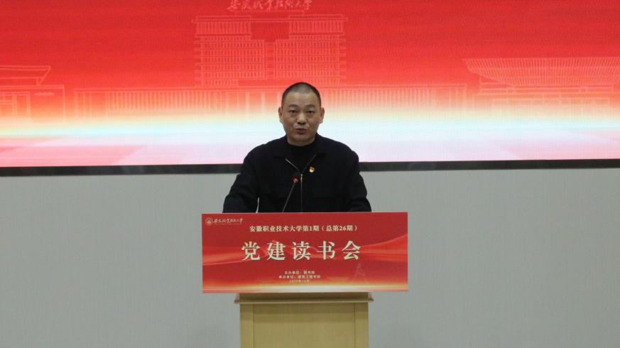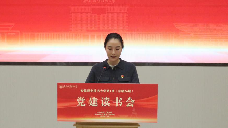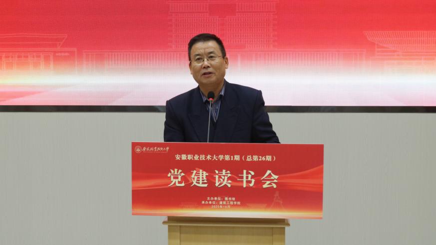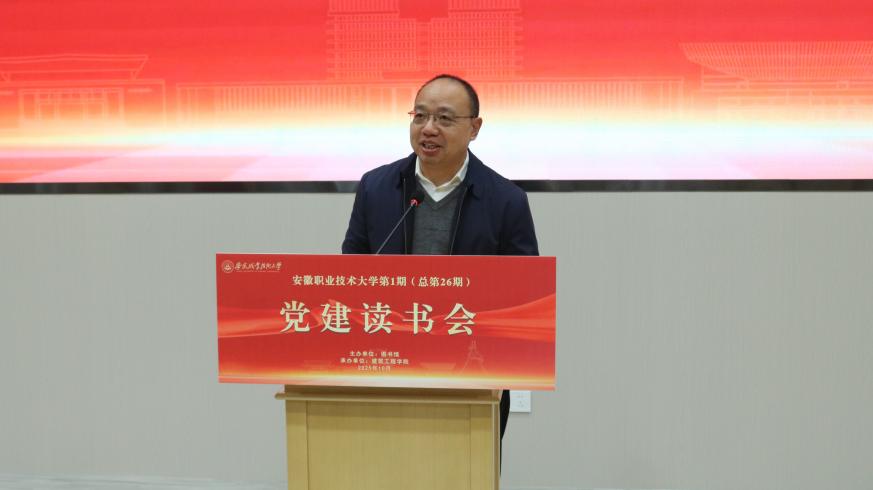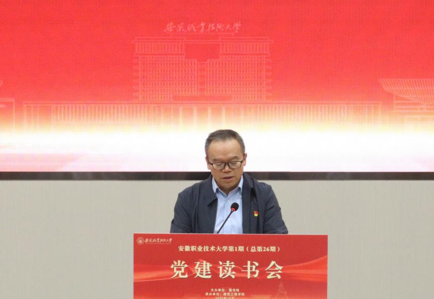 10月20日,安徽职业技术大学在建筑工程学院至真楼举办第1期(总第26期)党建读书会。学院领导班子成员与180余名书友齐聚一堂,在书香中交流思想,共谋学校发展新路径。本次读书会由图书馆主办,建筑工程学院承办,党委副书记、校长盛鹏主持。