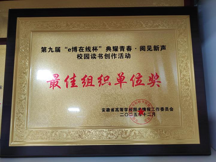 为深入贯彻落实党的二十大关于“深化全民阅读活动”的重要部署,积极响应“书香中国”建设号召,充分发挥高校图书馆在文化育人中的阵地作用,由安徽省高等学校图书情报工作委员会主办、全省各高校图书馆协办、合肥博西数据技术工程有限公司(e博在线)承办的第九届“e博在线杯”校园读书创作活动于2025年9月15日至11月20日成功举办。