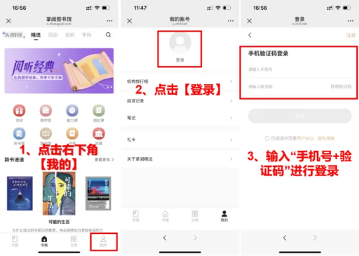 进入【我的】页面,点击上方“登录”,输入手机号和验证码后点击登录。