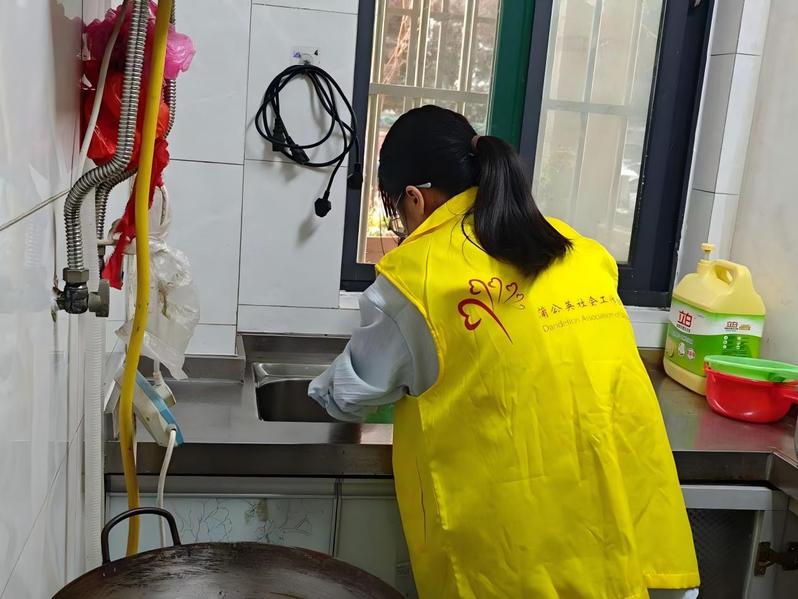 活动当天,蒲公英协会志愿者和社工带着清洁工具和崭新的生活用品来到老人家中。清扫过程中,志愿者与社工分工协作,有的清理常年堆积的杂物和垃圾,有的擦拭被煤烟熏黑的窗户和家具,有的仔细清扫地面和角落里的煤灰。经过数小时的辛勤劳动,原本昏暗杂乱的房间变得窗明几净,焕然一新。社工还耐心地向老人讲解了安全用电、用火以及防止一氧化碳中毒的知识,叮嘱他注意保重身体。