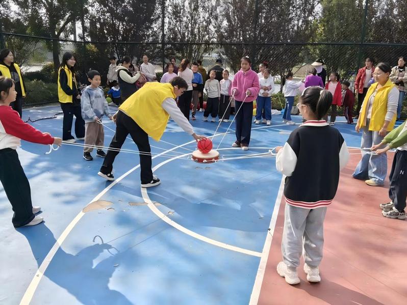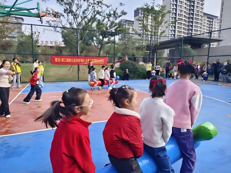 为丰富文忠苑儿童的课余生活,增强孩子们的体质,培养他们的运动兴趣,蒲公英协会志愿服务队开展了一场专属孩子们的趣味活动。2025 年 10 月 26 日上午九点,童趣运动会在龙湖篮球场上热闹开场。蒲公英协会的志愿者们提前挂好横幅,摆好粗麻绳、充气毛毛虫、同心鼓等道具,笑着引导孩子们签到—— 一场童趣运动会很快聚满叽叽喳喳的小身影,正式拉开帷幕。