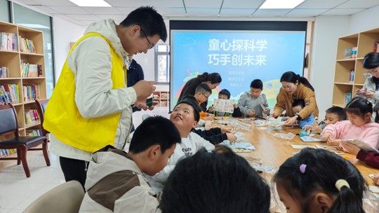 随后,进入最受期待的“科学手工制作”环节。在志愿者的耐心指导下,孩子们亲手制作了“简易风扇”、“地球仪”等趣味小手工。他们专注地连接电路、组装零件,在实践中将理论知识化为直观体验,不仅锻炼了观察与动手能力,更在一次次尝试中学会了如何分析并解决问题。